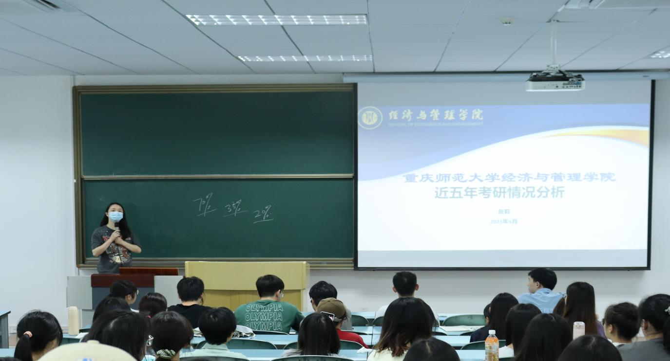 张莉老师结合2020级学生具体情况同时通过比较学院近五年的考研数据,让同学们更加认清当前的考研形势,并对在场的学生提出了殷切的希望和要求,希望同学们行动起来,迎难而上!