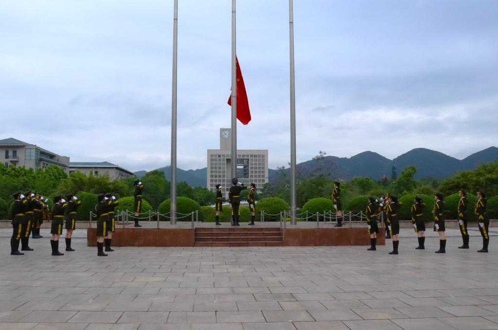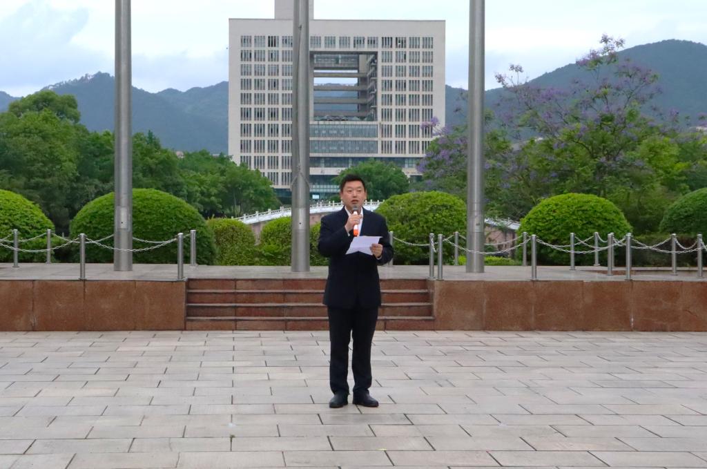 晨曦徐徐,国歌雄壮。全体师生在美丽的三春湖畔举行升旗仪式,接受思想的洗礼。仪式伊始,护旗手们迈着铿锵有力的步伐护送国旗入场,在慷慨激昂的《义勇军进行曲》中,鲜艳的五星红旗冉冉升起,全体师生肃立行注目礼。升旗礼毕,党委书记钟敏作国旗下的讲话。