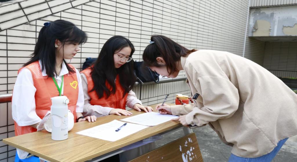 图 志愿者们引导签到