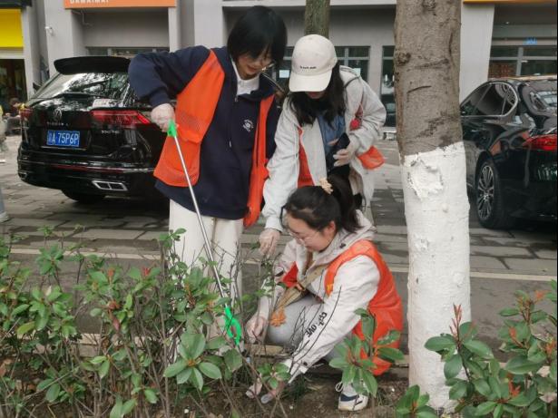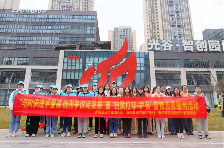 学生党员走出校园,走进虎溪街道学智社区积极开展学雷锋志愿服务活动。