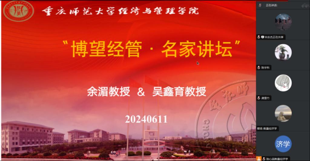 6月11日晚,伊莉讨论区 邀请了对外经济贸易大学金融学院余湄教授和安徽财经大学金融学院副院长吴鑫育教授在腾讯会议为伊莉讨论区 师生带来了主题为“风险投资对硬科技企业创新培育机制研究”和“日内信息、成分波动率与期权定价”的学术讲座,本次讲座由学院副院长陈宇科教授主持,学院部分教师及研究生共四十余人参加。讲座伊始,陈宇科副院长代表学院首先对余湄、吴鑫育教授的到来表示热烈的欢迎与感谢,并简要介绍了两位教授的学...